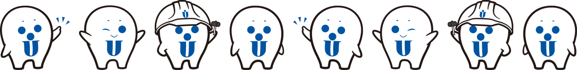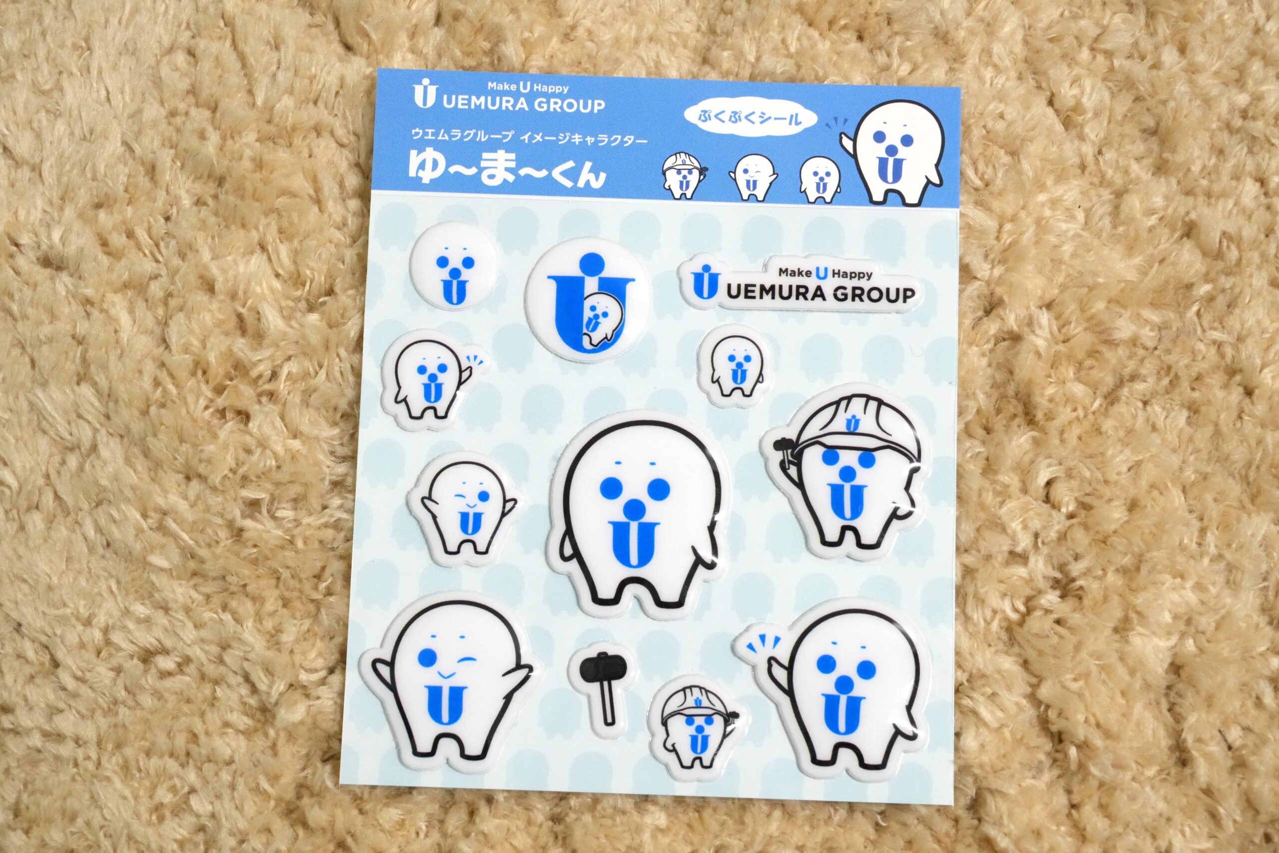 ゆ~ま~くんは、ウエムラグループのマークでもある「U」の文字を胸に刻んで、挑戦する人を応援する情熱と優しさをイメージしてデザインされたキャラクターです。
