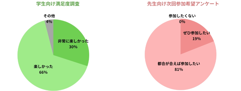 私たちの願いは、学生が職業選択の幅を広げ、未来を自らデザインするきっかけをつかむこと。ウエムラグループ各社、そして協力会社までもが垣根を越え、一丸となって挑んだこのイベントは、学生満足度96%というアンケート結果を得ることができました。