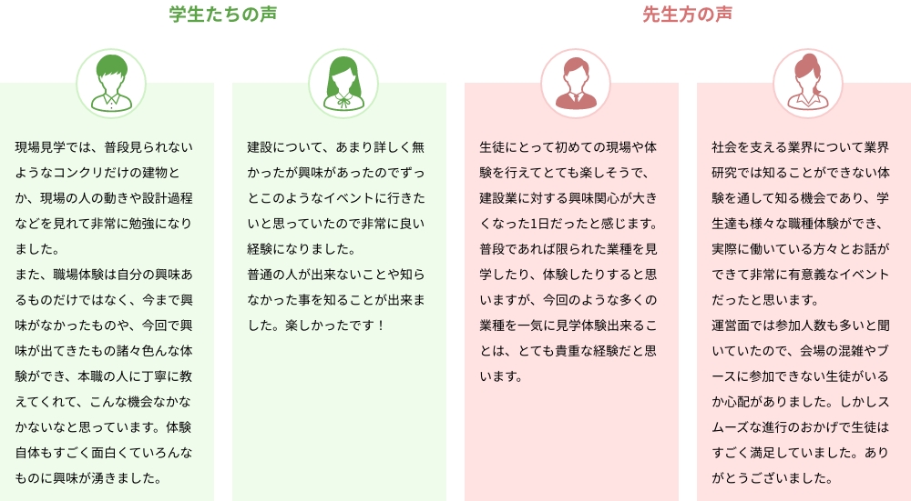 建設業未来展望フォーラムは、建設業の魅力を次世代へ伝え、持続可能な社会の実現に向けた取り組みの第一歩です。